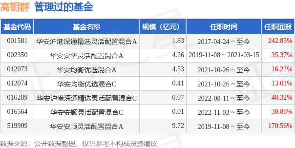 高钥群女士:硕士,中国国籍,历任Longview Partners金钱措置公司数目分析员,高华证券有限连累公司行业及公司策动分析员,2011年2月加入华安基金,历任环球投资部策动员、助理投资司理。2017年4月起担任华安沪港难懂精选纯真建树搀杂型证券投资基金的基金司理。2019年11月8号担任华安安顺纯真建树搀杂型证券投资基金基金司理。2019年11月至2021年3月,曾任华安安华纯真建树搀杂型证券投资基金基金司理。